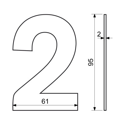 RN.95L.2.N broj "2" 95mm nehrđajući čelik