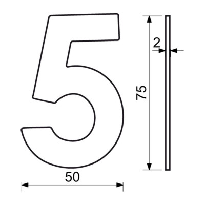 Samoljepljivi broj, visine 75 mm, podloga od nehrđajućeg materijala presvučena crnom bojom.