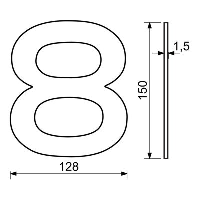 RN.150L.8.CE broj "8" 150 mm crna mat-mat