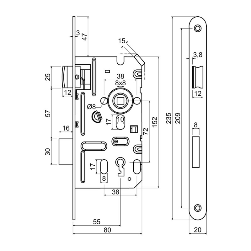 - Dubina ugradnje: 80mm