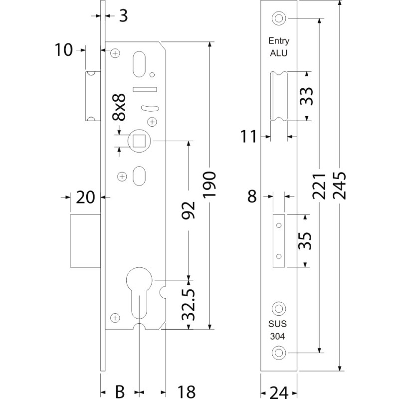 Udaljenost od ivice 25, 30, 35, 40, 45 mm.
