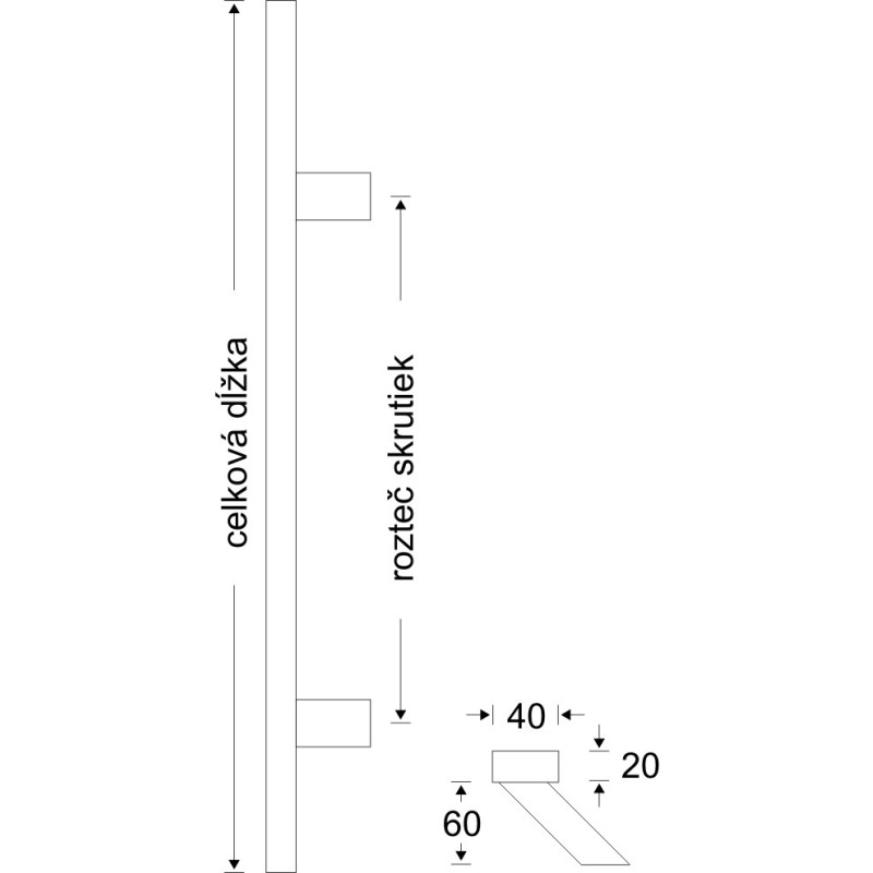 Ručka 50/30 četvrtasta s ravnim rubom, obostrano.