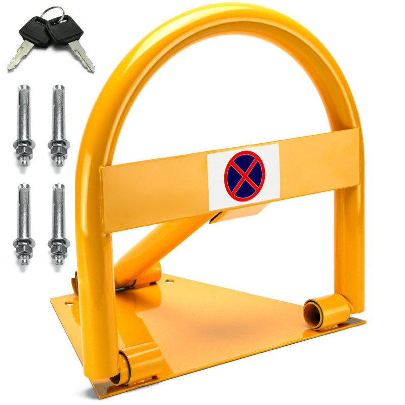 Sklopiva žuta parking prepreka s ključem, visine 41 cm. Parking prepreka je uređaj namijenjen osiguranju parking mjesta od neovlaštenog ulaska. Postavlja se izravno na parkirno mjesto i zaključava se mehanički kako bi spriječila vozilo da se parkira. Koristi se uglavnom na privatnim ili rezerviranim parkiralištima.