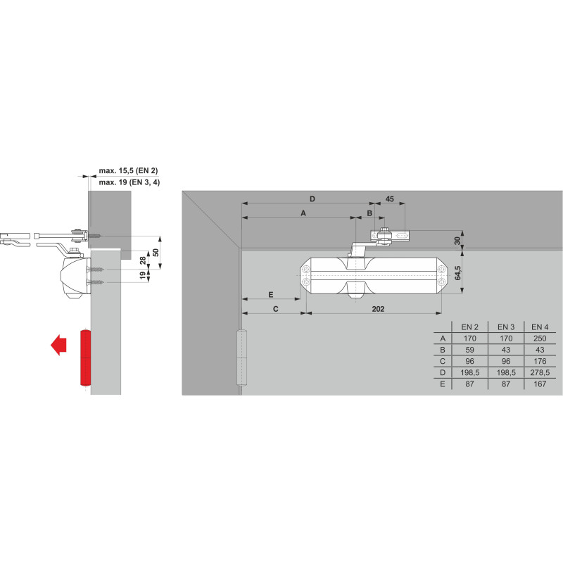 - Podesiva zatvarajuća sila Veličina EN 2/3/4