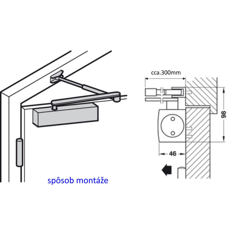 - montaža na vrata ili okvir, na strani šarki ili na suprotnoj strani od šarki,