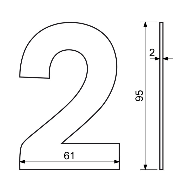 RN.95L.2.N broj "2" 95mm nehrđajući čelik