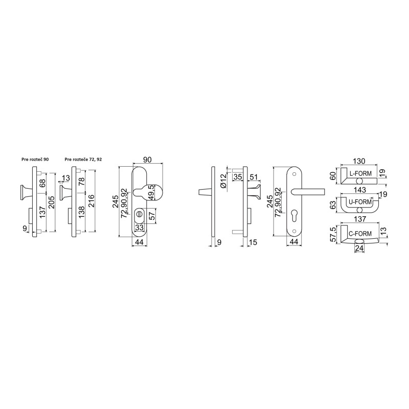 Isporučuje se za međuosovinske razmake i debljinu vrata