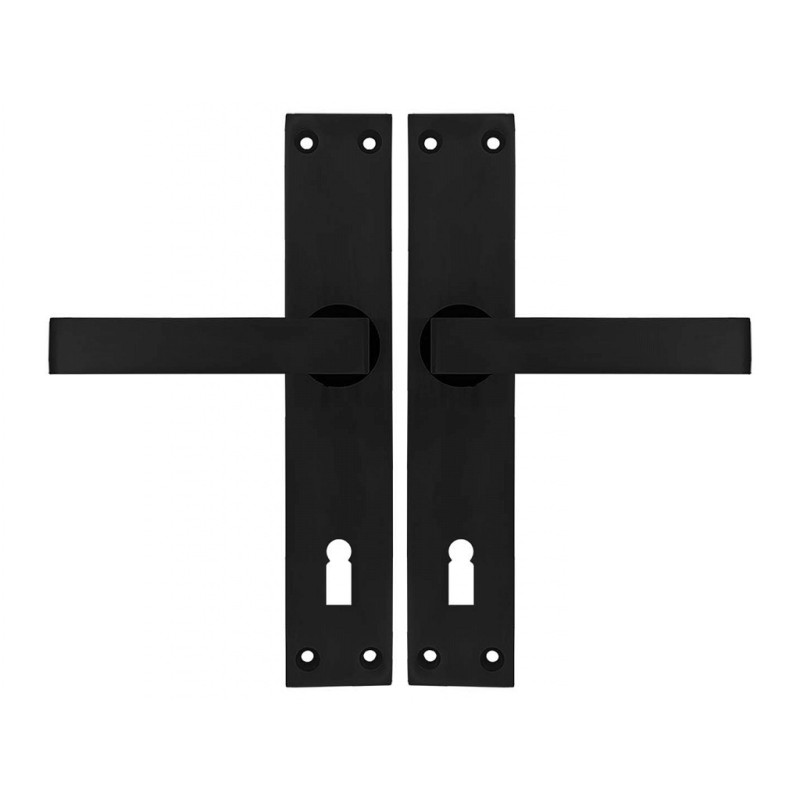 26101 aluminijska okova s kvalitetnom crnom površinskom obradom, izvedba sa ključem, razmak okova je 90mm. U pakiranju vijci u crnoj boji / 8 kom /