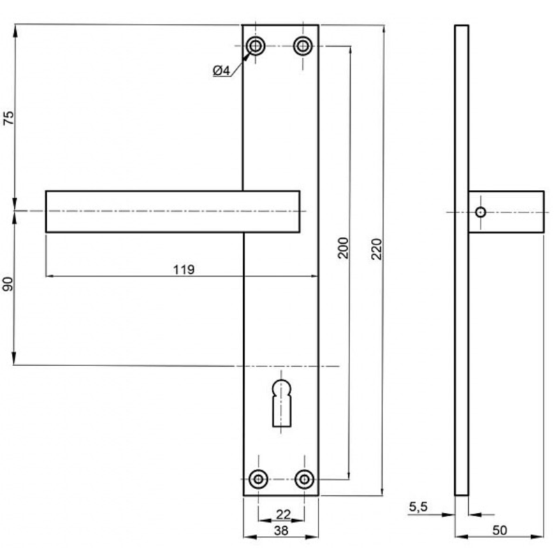 Razmak između štita kvake: 90mm