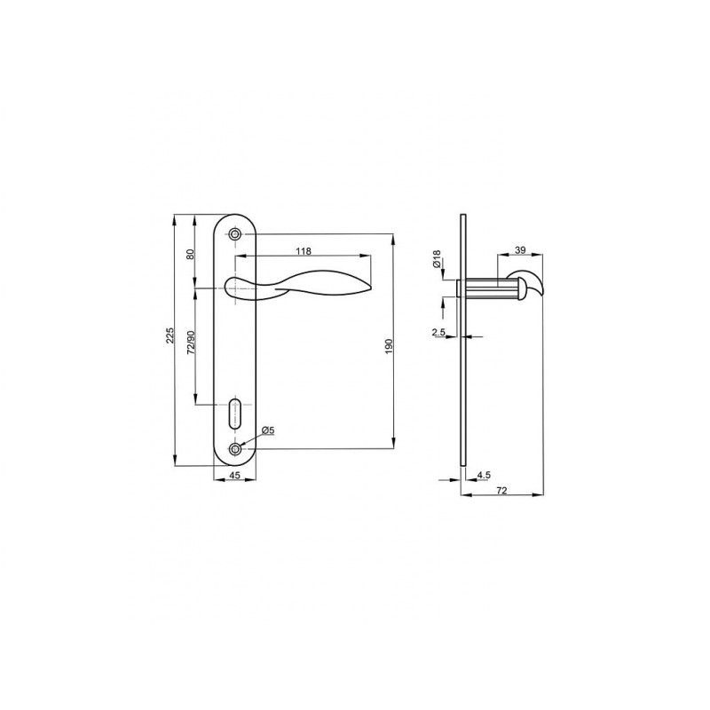 - dimenzije: dužina ploče 225mm, širina ploče 44mm, razmak montažnih rupa 190mm