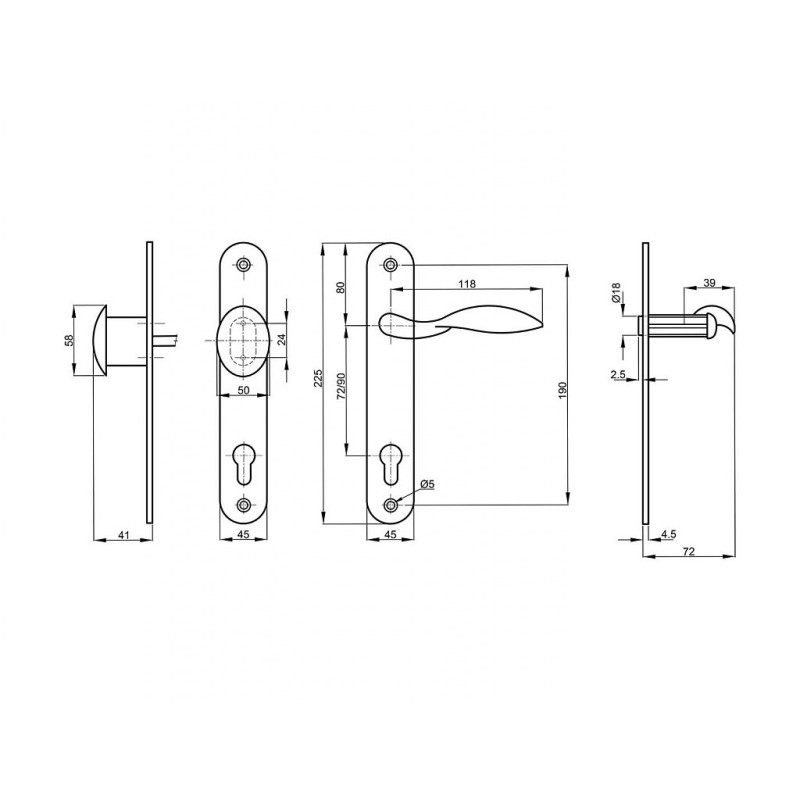 - dimenzije: dužina ploče 225mm, širina ploče 44mm, razmak montažnih rupa 190mm