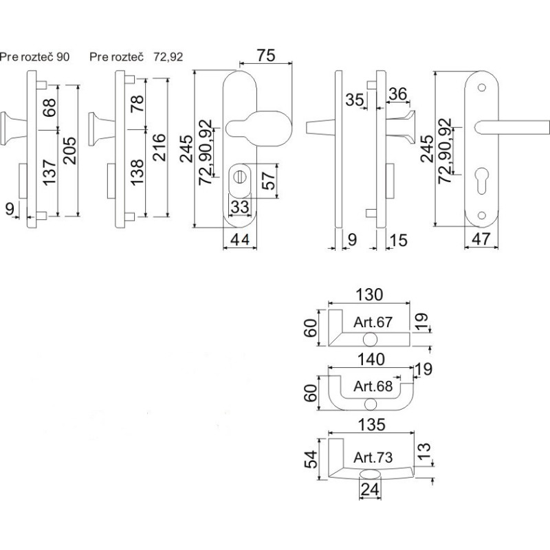 - Modularni sustav okova, omogućuje zamjenu svakog njegovog vanjskog dijela (npr. ručice, kvake, rozete, oblika štitova).