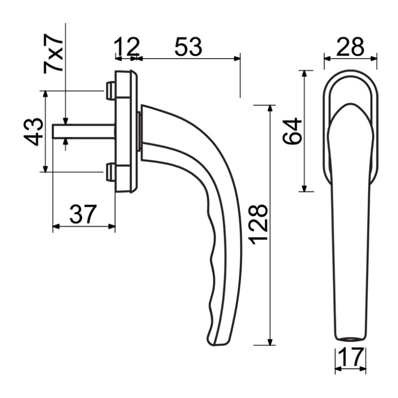 Plastična ručka za prozore sa cinkovom jezgrom