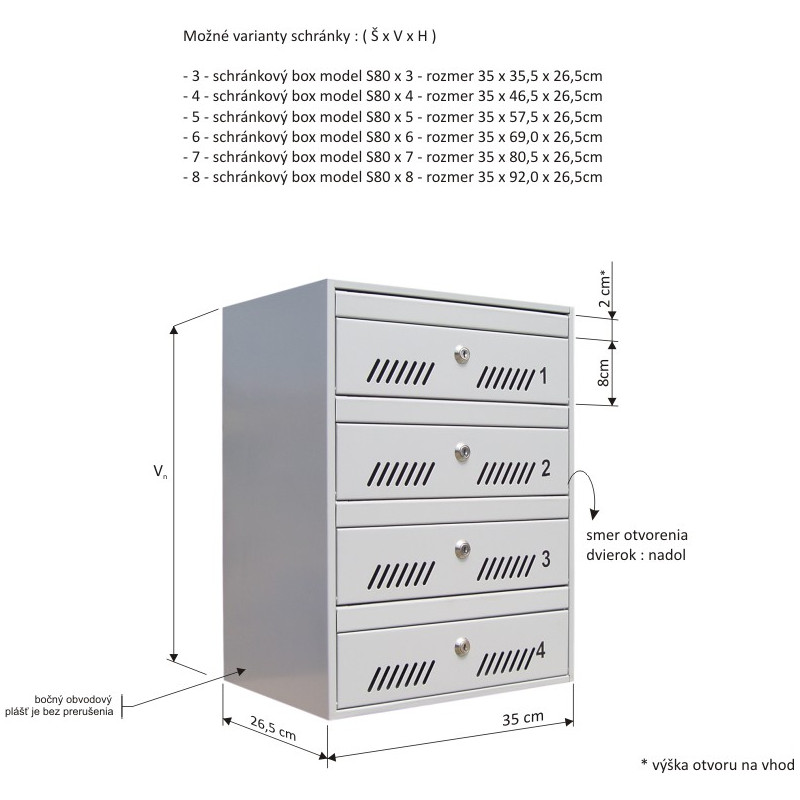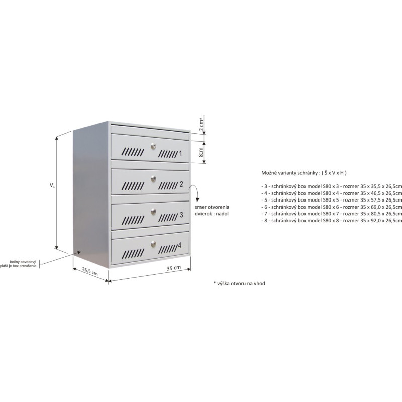 - - 8 - model sandučića M35 N /8 - dimenzije 35 x 92,0 x 26,5cm / modul sadrži 8 sandučića