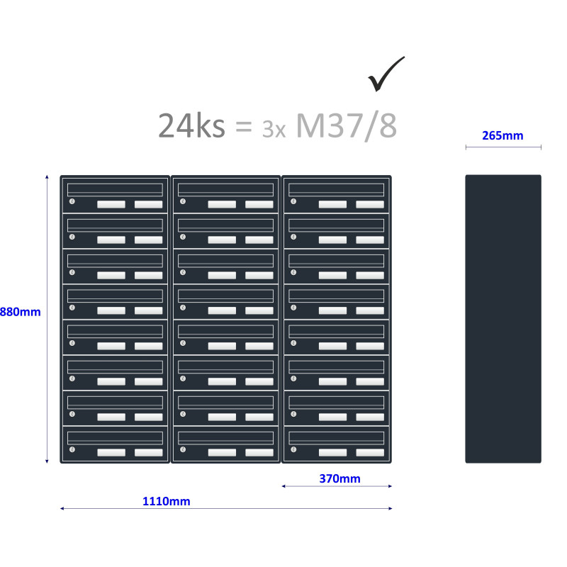 - - 8 - model sandučića M37/8 - dimenzije 37 x 88 x 26cm / modul sadrži 8. sandučića