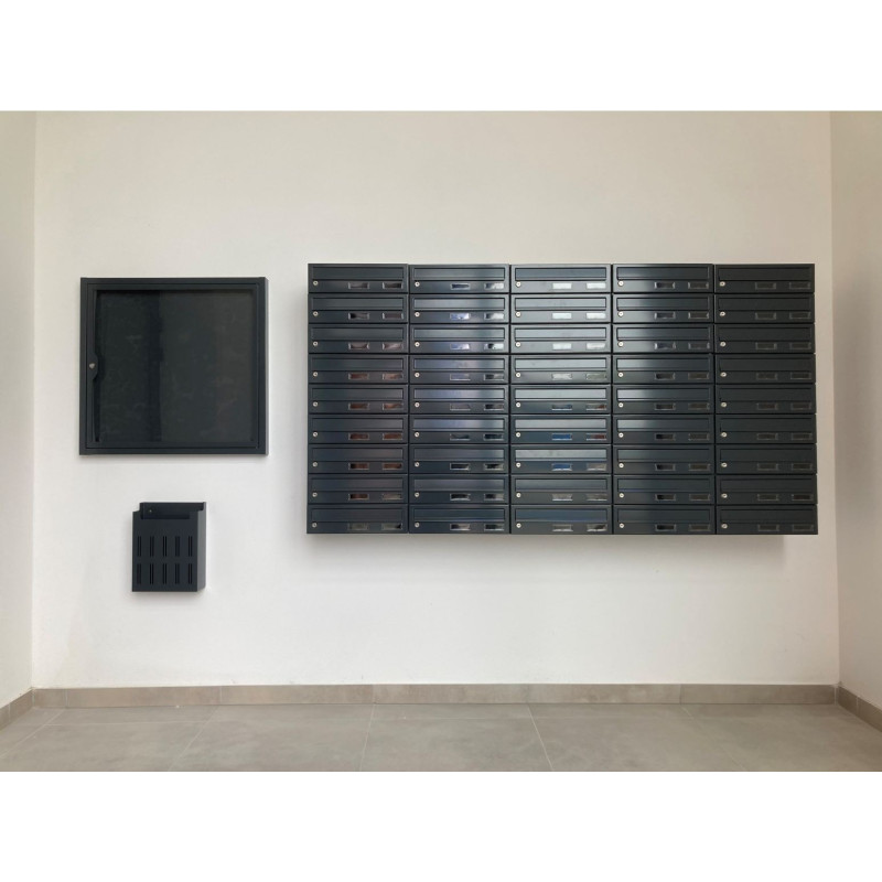- Oblik modula omogućuje montažu sandučića u širinu i visinu do željene konfiguracije, / modul ima širinu 37cm /.