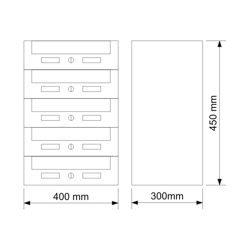 - Veličina pojedinačnog sandučića Š / V / D: 400x85x300mm