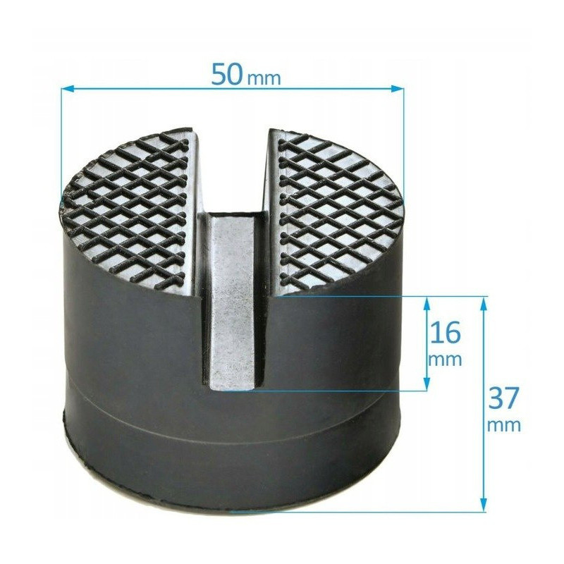 Visokokvalitetna zaštitna guma za dizalice tipa "žaba" nosivosti 2,5 tone. Proizvod je napravljen od debele gume širine 32 mm, koja pruža odgovarajuću zaštitu dizalice i dizanog vozila.