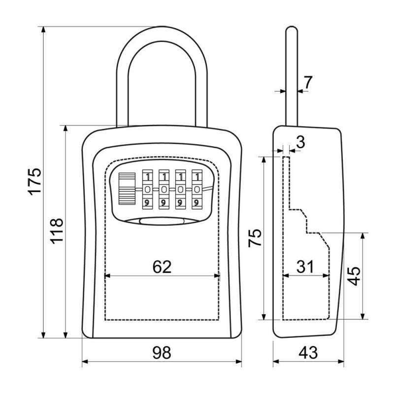 Sigurnosna čelična poštanska kutija (depozit) za pohranu ključeva. Mehanička brava s natkritim brojčanikom. Postavljanje vlastite kombinacije, koju možete u bilo koje vrijeme promijeniti.