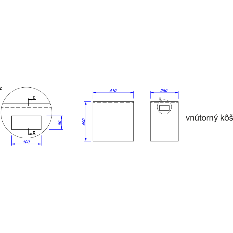 - Dimenzije unutarnjeg koša: 400 x 410 x 280 mm