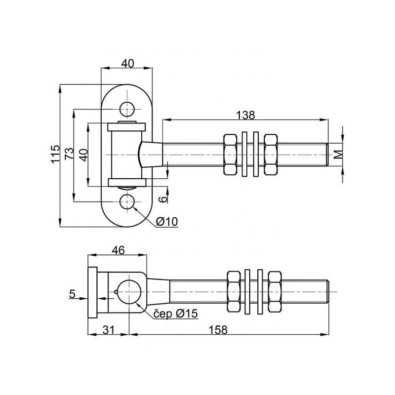 - Podesiva šarka s ovalnim pločom M20 s završnom obradom BZN (cinkan).