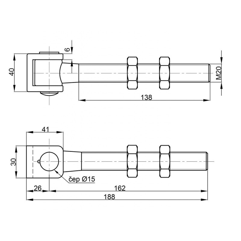 - Podesivi zglob s dugom šraflom M20 s površinskom obradom bijeli cink, osiguravajući visoku otpornost na koroziju.