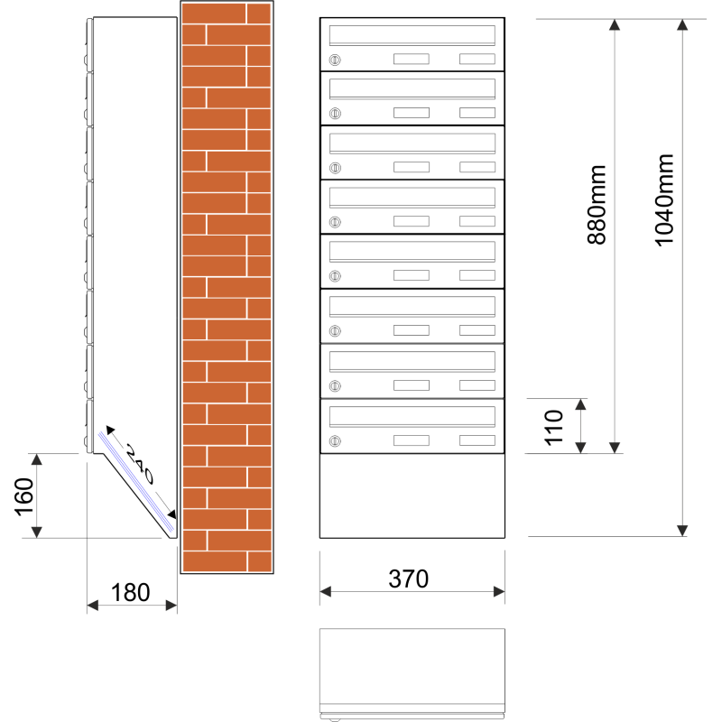 • Kosi poštanski sandučić izrađen u modulu / 8 komada po visini.
