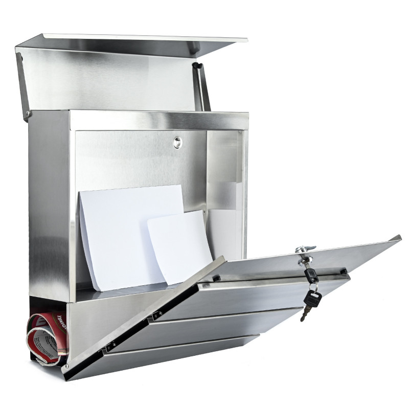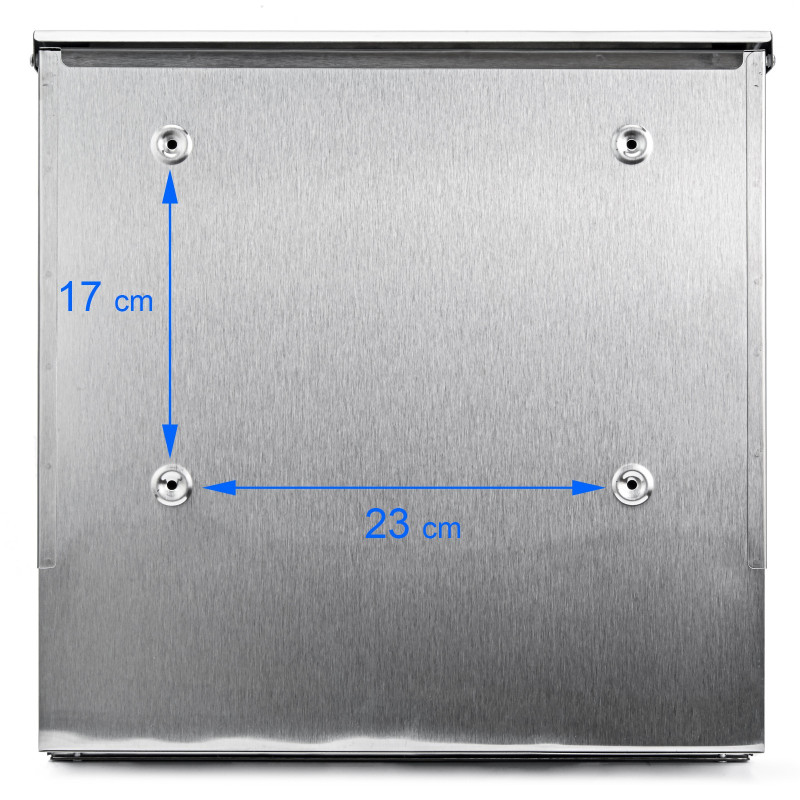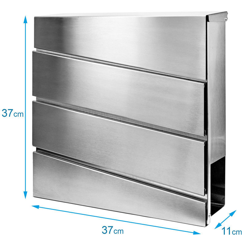 Poštanski sandučić od visokokvalitetnog nehrđajućeg čelika. Dug vijek trajanja postignut je korištenjem materijala. Dizajniran je za udobnost korisnika i prati trenutne estetske trendove. Sandučić je opremljen dodatnom pregradom za novine i veće letke. Odozgo je svaka korespondencija zaštićena od vlage. Sandučić sadrži montažne elemente na stražnjoj strani - za još bržu i lakšu montažu. Tehnički specifikacije: - Dimenzije 37x37x10,5 cm / Š x V x D - Dimenzija otvora za poštu: 33,5 x 3,5 cm / Š x V - Dimenzija cijevi za novine: 8x9 cm / V x D - Dimenzije prostora za poštu: 36,5x26x8 cm / Š x V x D - Materijal: nehrđajući čelik - Boja: nehrđajući - Jednostavna instalacija - Montaža na unutrašnjost i vanjsku stranu - Mjesto za novine i letke - Sandučić se može zaključati, brava je dobro skrivena od vremenskih uvjeta - Težina 3,5 kg - Uključuje 2 ključa i montažne vijke (4 komada) - Mjesto za novine i letke - Kod montaže na ogradu možete koristiti univerzalni držač za montažu Poštovani kupče, molimo vas da se prije kupovine upoznate s dimenzijama sandučića. Dimenzije sandučića su navedene u tehničkim specifikacijama, ili crtežima. U cijeni je: Poštanski sandučić, 2 ključa, 4 montažna vijka, 4 gumene podloške, kartonska kutija