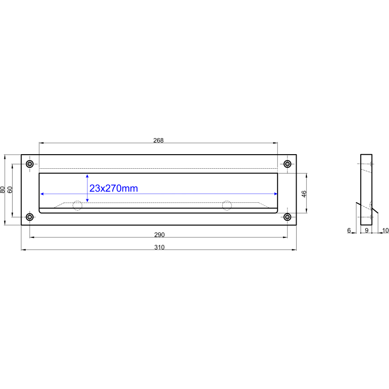 - Dimenzije otvora: 270 x 25mm / Š x V