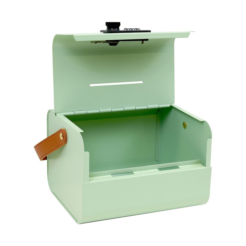 Čelična blagajna s kodiranim bravom i remenom od eko kože.