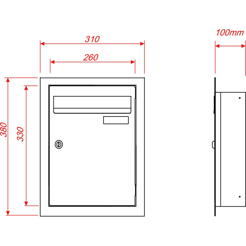 - Dimezije sandučića (Š x V x D): 260 x 330 x 100 mm + okvir "L" profila