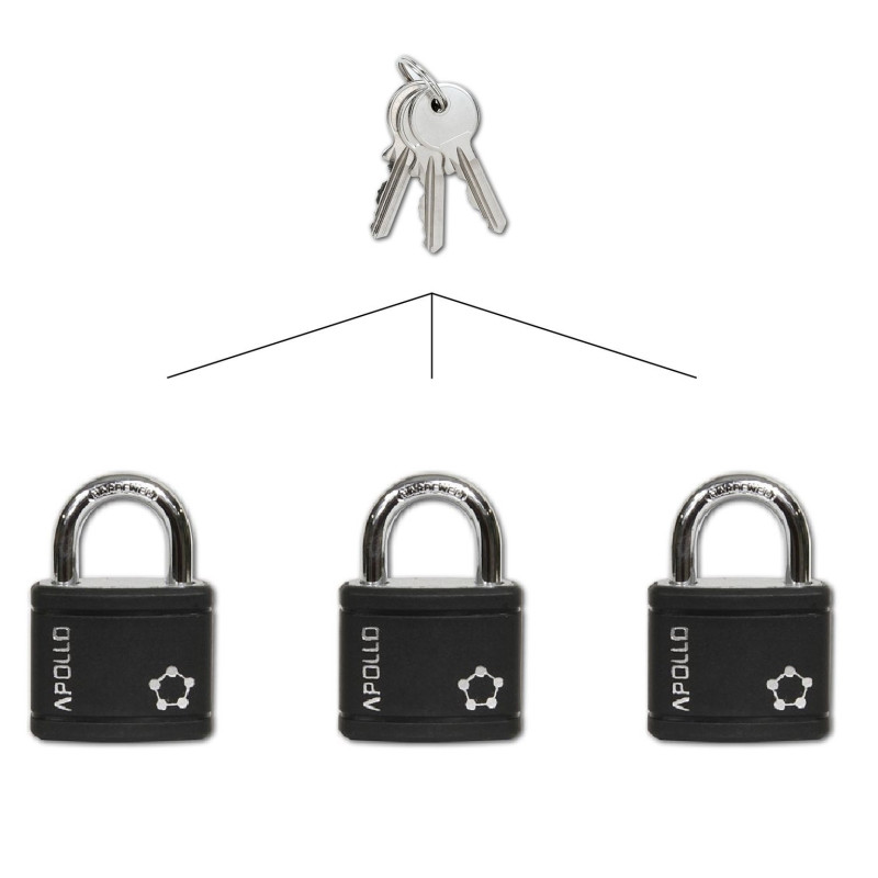 Svi viseći zatvarači označeni sa SU1 dijele isti ključ i mogu se međusobno otključati. Viseća brava označena sa SU1 ima drugačiji ključ od viseće brave označene sa SU2 ili SU3.