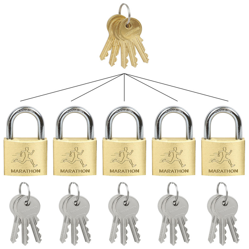 - Glavni "zlatni" ključ otvara sve viseće brave seta, ostali vlastiti "srebrni" ključevi otvaraju samo svoju viseću bravu
