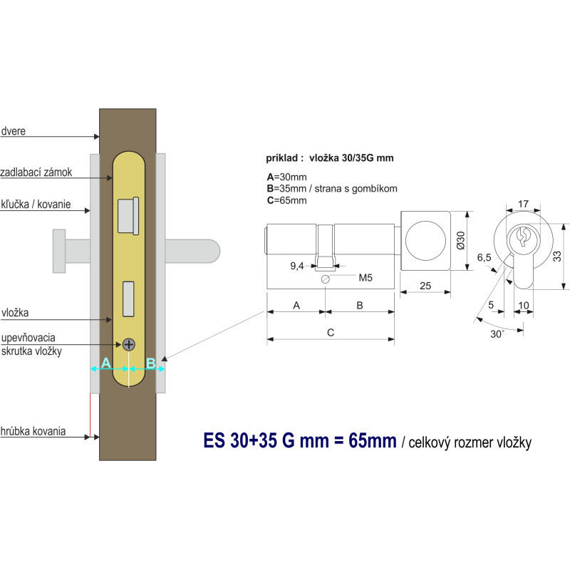 • Dimenzija umetka 30+35mm/Gumb na strani 35mm