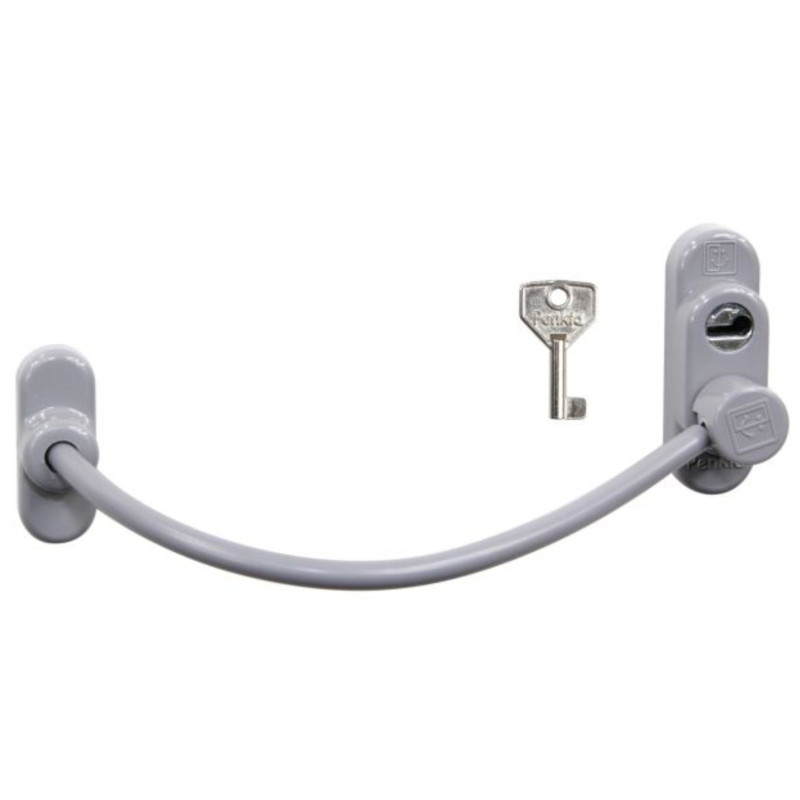 Sigurnosna lančana brava za plastične, aluminijske i drvene prozore. Omogućuje sigurno otvaranje prozora za oko 10 cm. Sprječava neželjeno kretanje osoba prema van i prema unutra. Zadržna sila: 5.000 N (500 kg).Duljina lanca: 17,5 cm, Promjer lanca: 5 mm