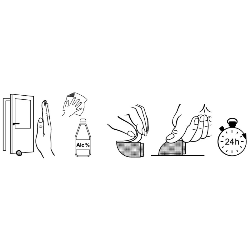 • zaustavnu gumu jednostavno zalijepite na suhu i čistu površinu - skidanjem poklopca sa trake,