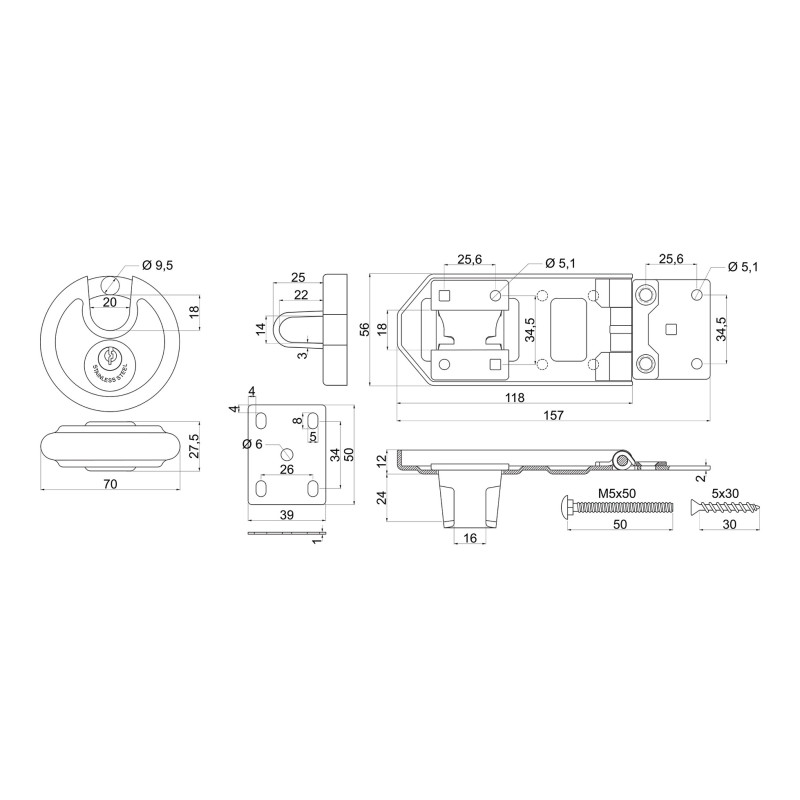 - Petlja, viseći lokot, montažni materijal, 3 ključa