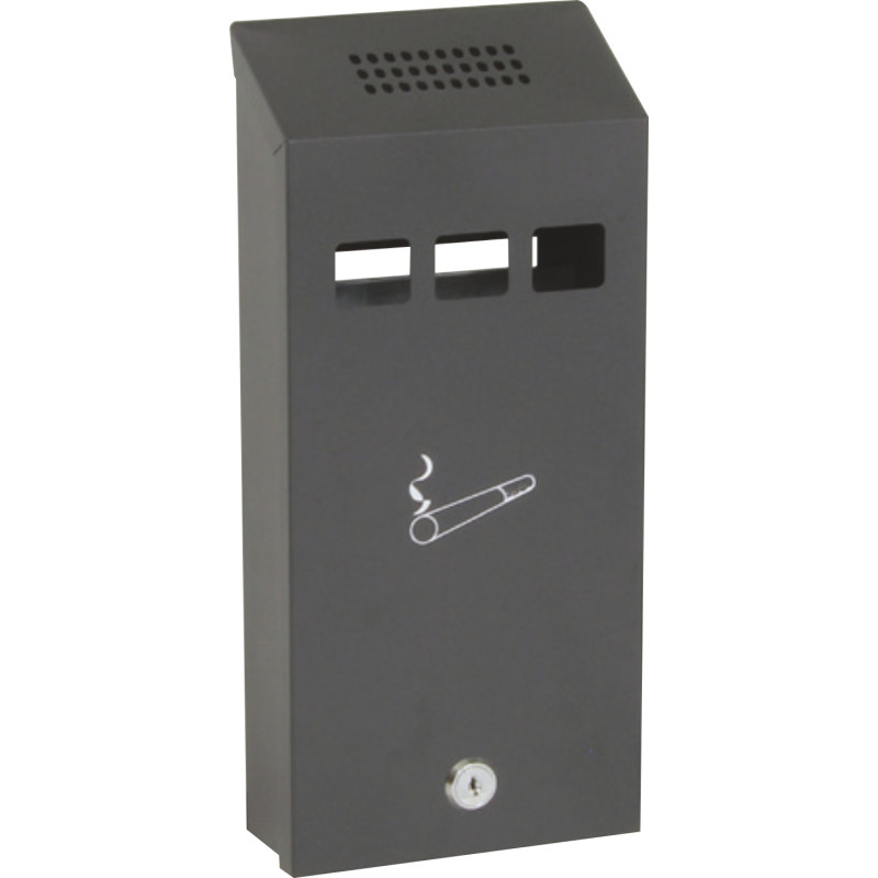 Elegantna crna viseća pepeljara za zid, koja sadrži izmjenjivu posudu za opuške od pocinčanog lima zapremine 1,4 l.